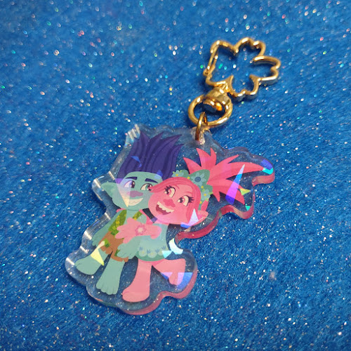 Home / Accessories / Troll Love Holographic Keychain Troll Love Holographic Keychain$6.00 6 in stock Troll Love Holographic Keychain quantity Add to cart Categories: Accessories, Keychain Tags: holographic, Keychain, Nostalgia, trolls Description Additional information Description 2″ acrylic keychain, with glitter! Additional information Weight .3 oz Dimensions 2 × 1 × 1 in Related products Accessories , Buttons Morning Glory and Sting Button Art Print The Red Queen and Rabbit Print Accessories , Buttons Pink Pony Plush Button Accessories , Buttons Star Pony Button